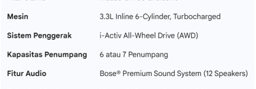 e-Skyactiv-G 3.3L Turbo: Mesin 6-silinder sejajar yang memberikan tenaga besar namun tetap halus dan minim getaran.