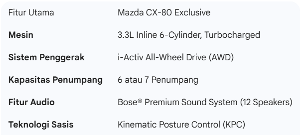 Mazda CX-80 hadir sebagai jawaban bagi mereka yang membutuhkan kapasitas muat lebih besar tanpa mengorbankan dinamika berkendara. Berdiri di atas platform Large Product Group, CX-80 memiliki wheelbase yang lebih panjang untuk memastikan penumpang di baris kedua dan ketiga mendapatkan kenyamanan maksimal. Ini adalah perpaduan antara ketangguhan SUV dan kelembutan sebuah sedan mewah.